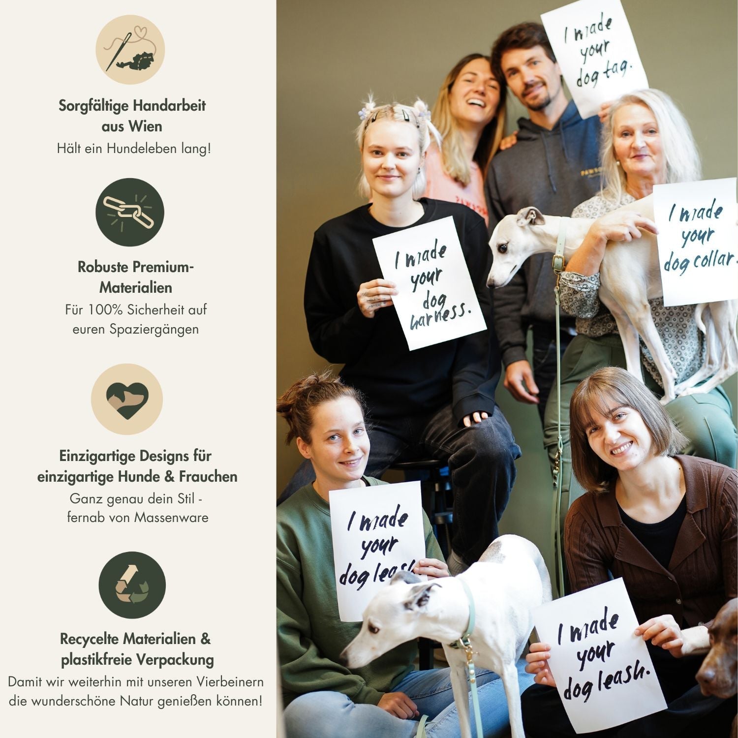 Die Riemenbreite wird individuell passend für das Gewicht des Hundes gewählt, um die Sicherheit und Stabilität zu gewährleisten.