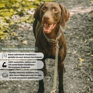 Entdecke unser Halsband-Leine-Set aus wasserfester Biothane für abenteuerlustige Vierbeiner! Die Farbe Khaki ist unser absoluter Bestseller.